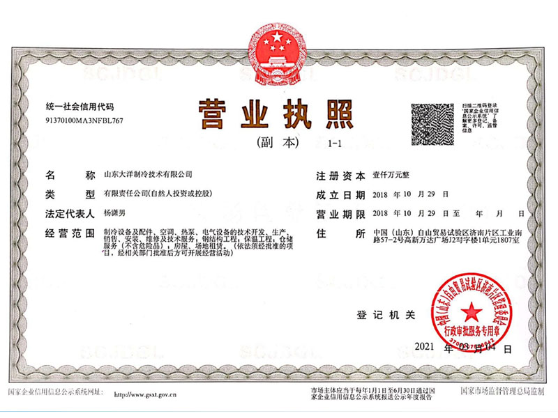 大洋制冷創建于2008年,注冊資本2000萬人民幣,專注制冷行業10余年,是以冷鏈物流、屠宰、食品深加工、果蔬保鮮、醫藥化工等為主導的跨行業公司。公司提供專業的工程策劃方案、項目設計、成套設備供應、安裝與調試、維護與維修、技術咨詢、操作 維修人員技術培訓。 公司已與央企華潤集團、中國核建集團、水發集團、政府部門農業局、新西蘭跨國公司環球園藝、阿根廷Biogenesis Bago生物等在行業內有代表性的1000多家公司及政府相關部門達成合作協議。 旗下在山東、浙江、上海、陜西、甘肅、新疆等地區分布有多家公司,業務已覆蓋華東、華中、華北、東北、西南、西北地區。